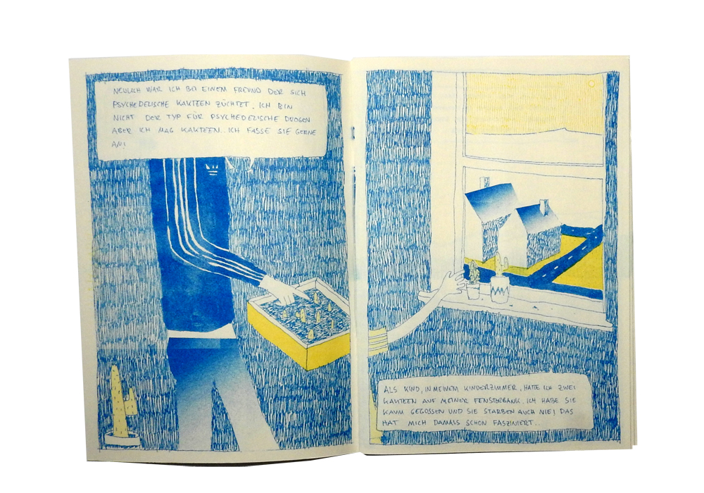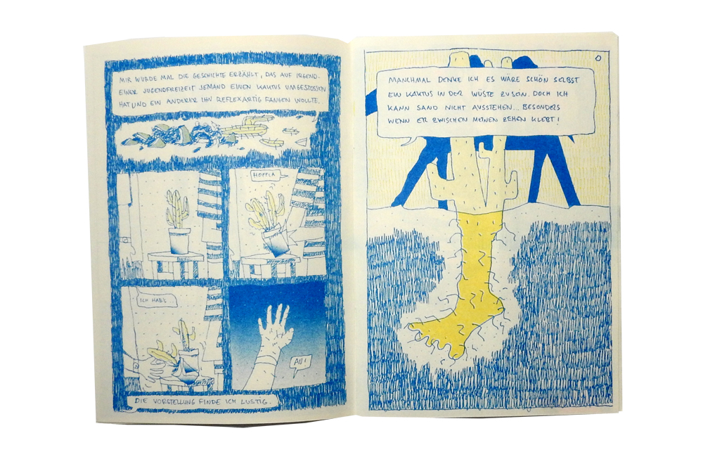 Projekt mit Anton Ohlow. Wendecover! Zwei Geschichten zum Thema Kaktus in der Mitte treffen sich die Geschichten.